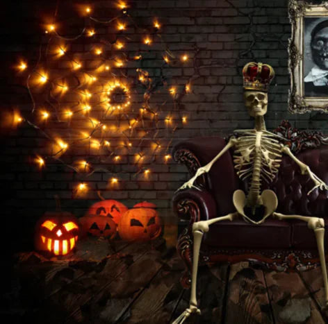 Set the mood with this LED spider net Halloween light, featuring 70 vibrant bulbs in purple, orange, or yellow. Easy to power via USB or battery box with remote control, it’s waterproof and versatile for indoor or outdoor use. Perfect for creating a spooky, festive atmosphere at parties or events.